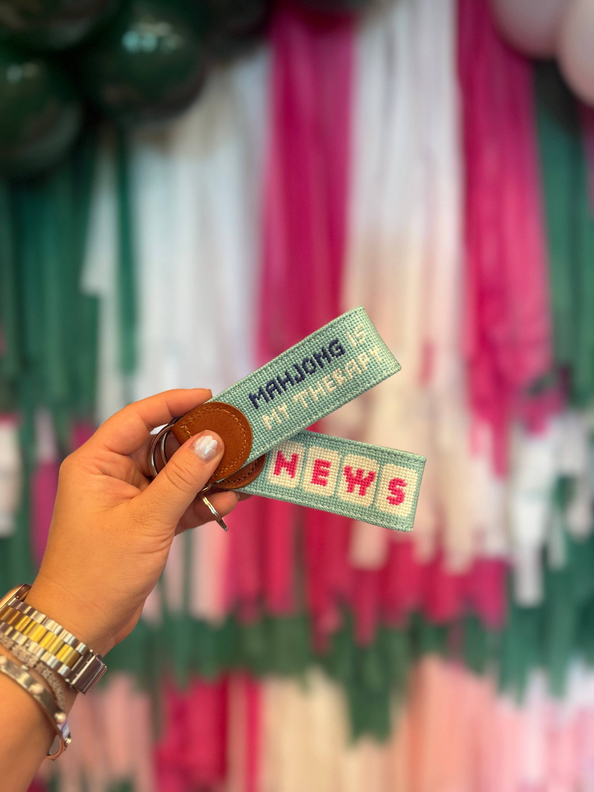 Mahjong is my Therapy Needlepoint Keychain