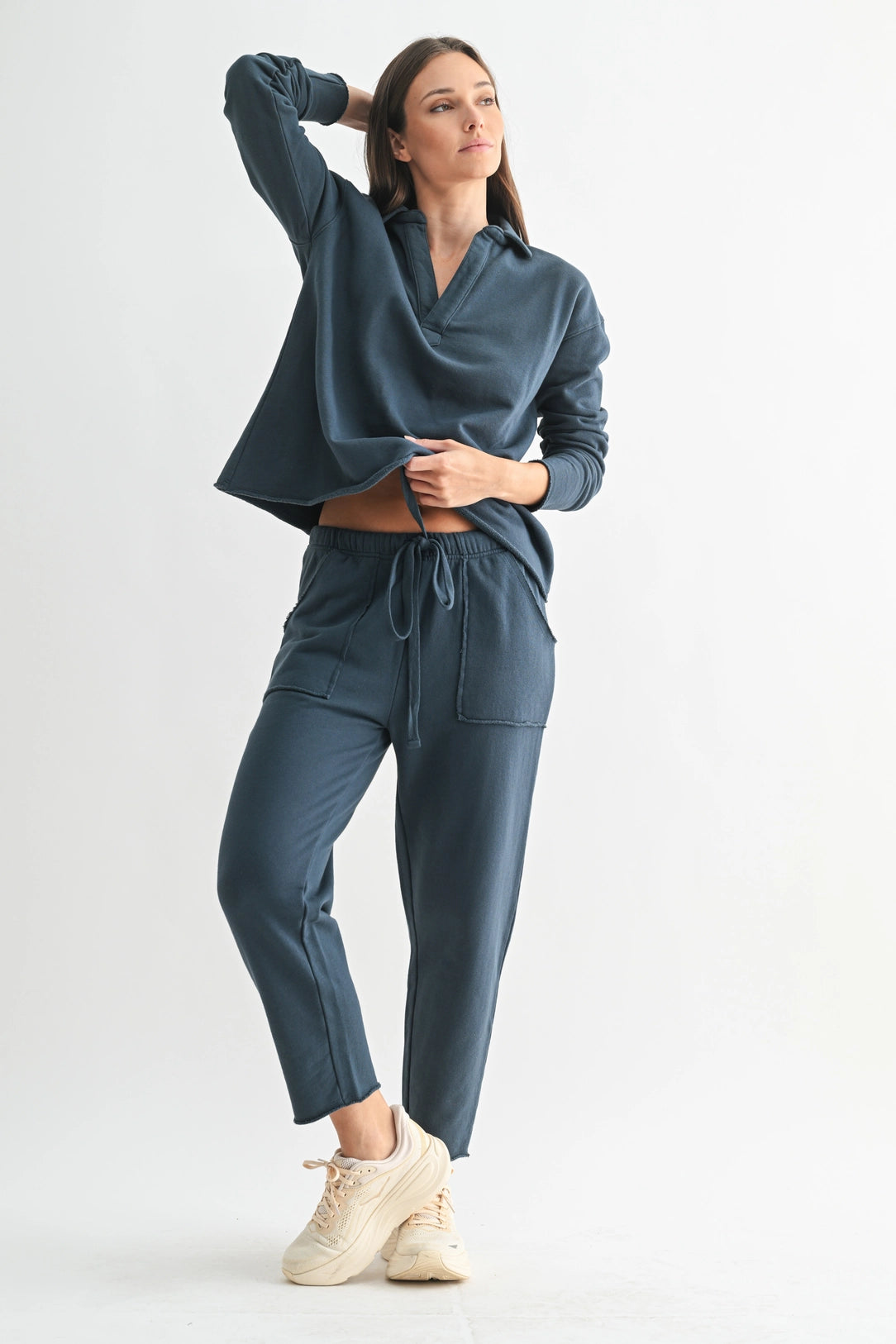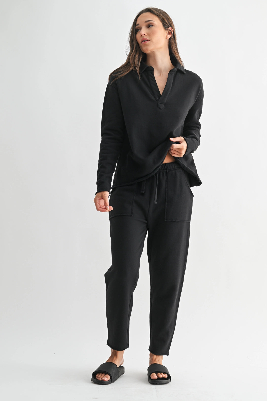 Henley-style long sleeve with a V-neck and raw-edge hem for a vintage look. Perfect for brunch or lunch, this versatile tee pairs effortlessly with denim for a casual yet polished vibe! 100%cotton Katherine is a 5'9", a size 2, and is wearing an S.